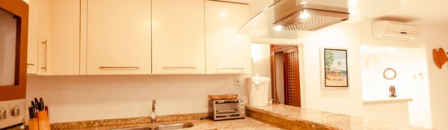It has a full kitchen with all utensils, TV, full ocean view. Direct access to the beach, it has a snack bar to order your favorite drink and a pool with Jacuzzi and wading pool for your children to play as long as they want.