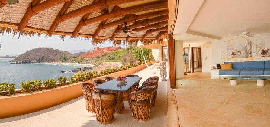 Tiene 2 recámaras en el primer piso y las otras tres en el segundo. Todas con su baño completo propio. La terraza es amplia, perfecta para que toda la familia se siente a desayunar en el comedor que tiene y disfrutar de una vista increíble del mar. Cuenta con áreas comunes con infinity pool y bar en donde puedes pedir tu comida y bebida favorita. También cuenta con gimnasio completo con una increíble vista al mar para motivarte. Podrás llegar a la playa con su hermoso recorrido de 8 minutos natural hacia la Playa Las Brisas.